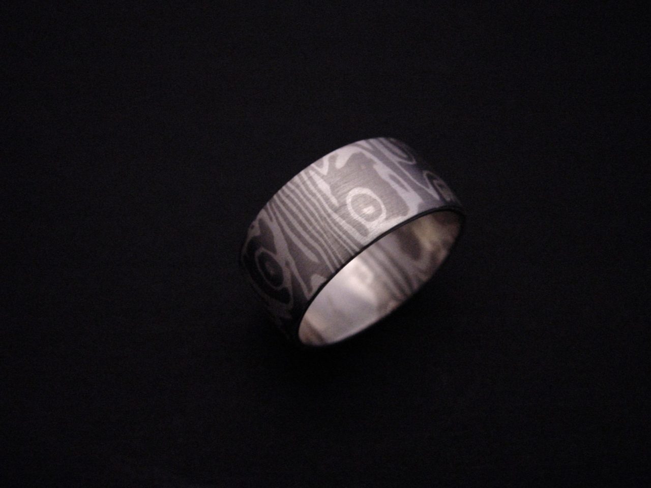 pendentif mokume gane argent-palladium, or blanc et diamant